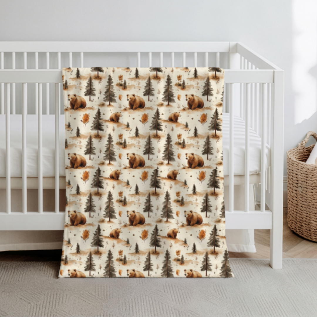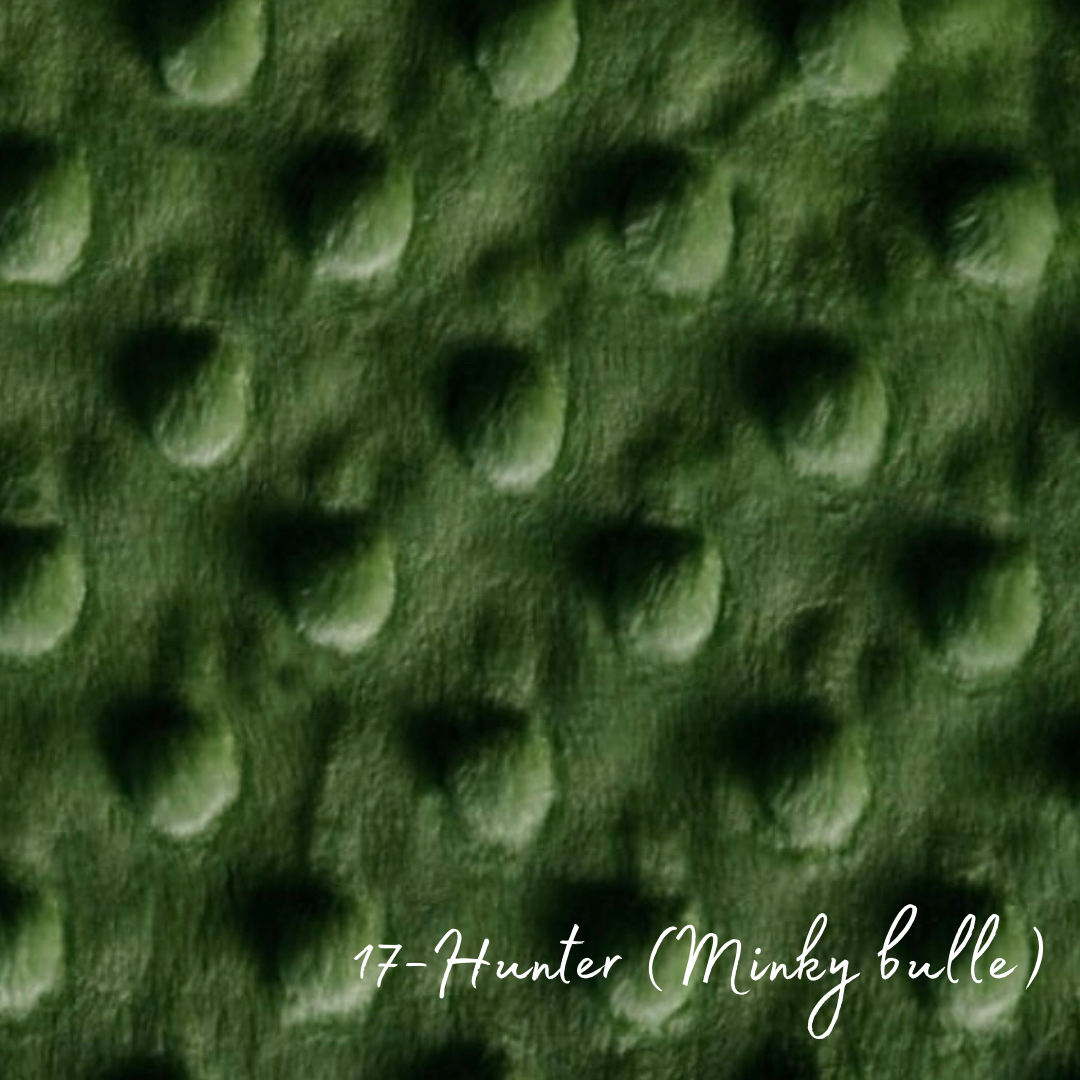 Minky ultra-doux a Motif d'ours pour le dessus et minky relief bulles hunter pour le dessous.